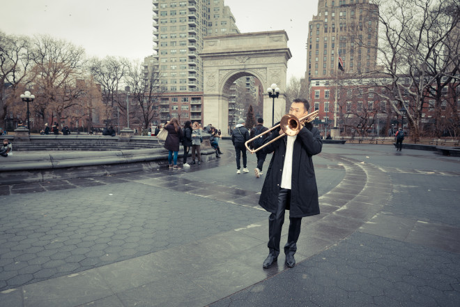 中川:そうですね。僕はSLIDE MONSTERSをやる前に、侍BRASSというグループをやっていたり、自分が育ったジャズと、勉強してきたクラシックと、その間に垣根がない音楽というか、どちらにも行けるボーダーレスな音楽をやるというスタイルだったんです。それをトロンボーンに特化してやってみたいというところから、ジョーさんに声をかけたのが始まりです。彼は家族がみんなジャズプレイヤーだったという生い立ちもあって、ジャズのレジェンドと言われるミュージシャンたちともたくさん時間を共有して、ライブハウスでジャズメンの演奏を聴いたり、レッスンを受けたり、それぐらいジャズに精通しているプレイヤーなので、僕がそういう話をしたら、喜んで「やろうよ」と言ってくれた。そこから始まって、ジョーさんがブラントとマーシャルを紹介してくれて、ブラントはバス・トロンボーンの第一人者で、マーシャルはニューヨークジャズシーンのトッププレイヤー。世代的にも僕ら3人は似たような年齢だから、ジョーさんもそこを考えてくれて、「楽しいメンバーでやろうよ」ということでやり始めたグループだったんです。