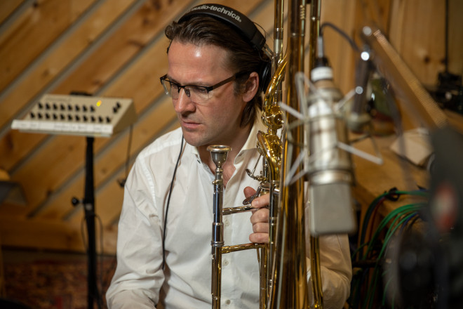 中川:1枚目の録音の時は、リハーサルを経て録音する予定だったのが、STORM(嵐)でブラントがオランダから来れなくて、初顔合わせがいきなりレコーディングの初日みたいな感じになってしまったんですよ。結果、録ることができたんですけど、その時はまだメンバー全員の音を意識できなかったというか、トロンボーンの音だけをイメージして譜面を書いていた感じだったんですね。でも今回作ったアルバムは一人一人の顔が見える状態で、その人の音楽性とか、どういうことをやったら彼が生きるのか?とか、自分も含めて4人に対して当て書きをしていることと、前回とは違ったもの、あるいは前回すごく良かったものを踏襲して、という思考錯誤をしながら作っていったので、今回みたいなアルバムになったんですね。けっこうリズミックなものが多いと思います。