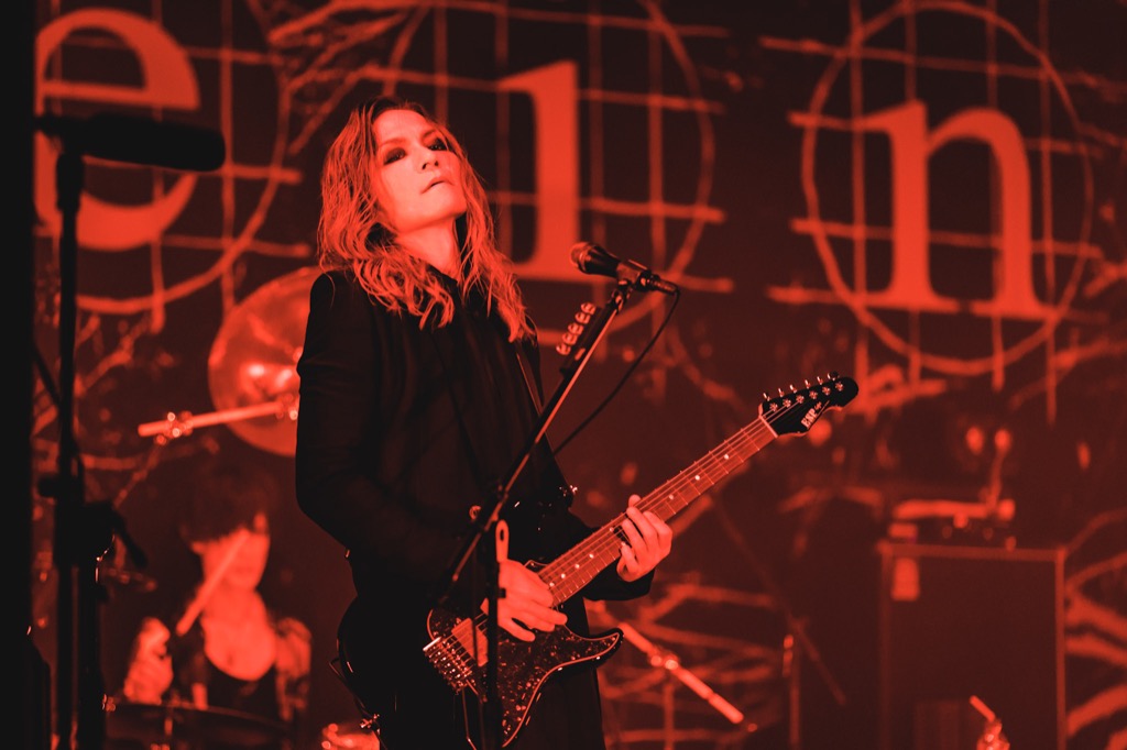 登場SEが流れると、暗めのステージの後方に掲げられた巨大なバックドロップのkeinのロゴに照明が当たり、楽器陣4人が現れ、それぞれ所定の位置につく。最後に眞呼が現れ合流すると、1曲目の「嘘」を始める。今年の4月1日、すなわちエイプリルフールの日に突然、なんの告知もなくYouTubeにリリックビデオが新録でアップされた、言ってみれば新生keinのはじまりの曲だ。lynch.での上手に見慣れた玲央が下手にいることにしてもそうだが、それぞれがスキルアップし、ミュージシャンとしてアップデートされたうえで再会したこと、バンドの屋台骨と言えるドラマーが新しくなったこともあり、サウンドやグルーヴがソフィスティケイトされた印象になったことも含め、90年代当時に彼らのことを追っていたファンにとっても新生keinは新鮮に映ったに違いない。なお、玲央は下手、aieは上手とそれぞれステージの両端に立ち、攸紀は上手側のややセンター寄り、Sallyは下手側のややセンター寄りと、センターの眞呼を中心に、正面から見て誰も隠れないように配置されていたのも特徴的だった。