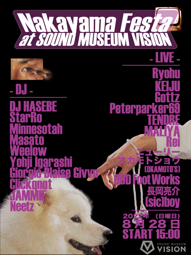 (sic)boy、keiju、長岡亮介、TENDREが出演、KANDYTOWNのRyohuが2010年より始動した<NAKAYAMA FESTA>が渋谷SOUND MUSEUM VISIONで開催される最後のデイイベントとして開催される。