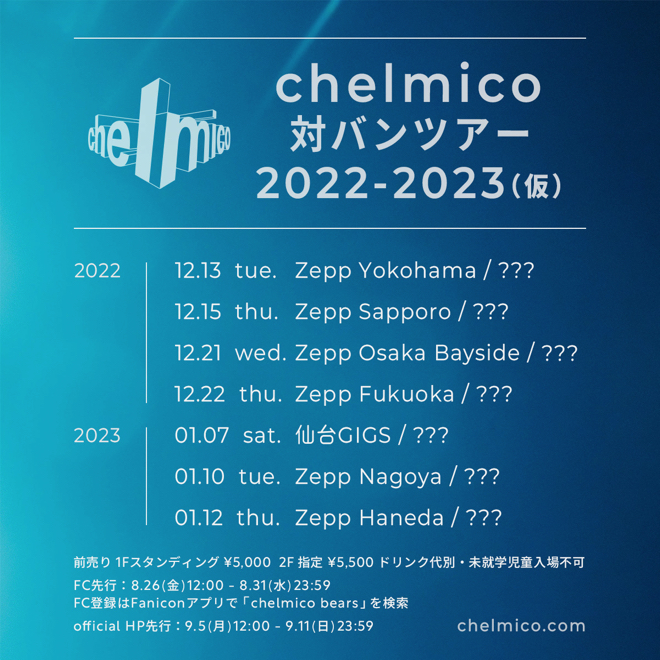 開催の告知とあわせて、8月26日正午よりファンコミュニティ「chelmico bears」会員向けのチケット先行受付が実施される。