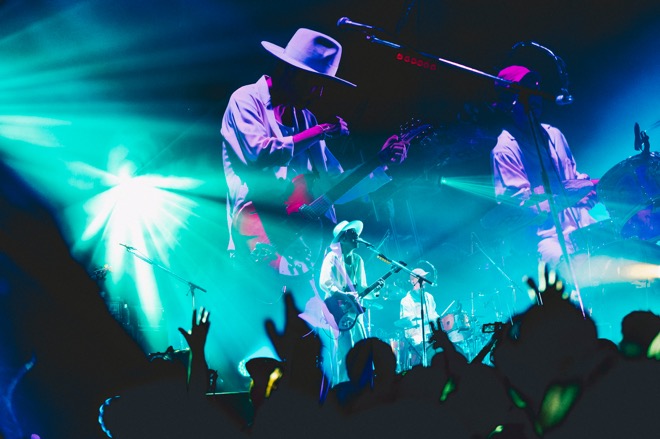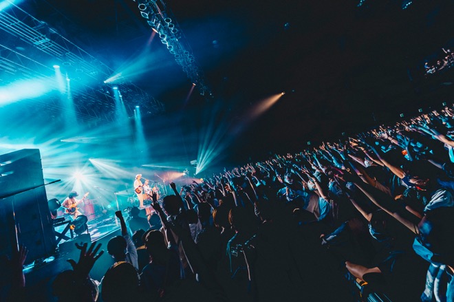続いて一悟(Dr / 浦山一悟)のフィンガースナップが手だれ、サトマ(B / 佐藤雅俊)も加わったリラックスナンバー「素晴らしき世界」。もはやギターからキーボードへという大木のチェンジが自然すぎるインスト「Link」。そして11曲目「ALE」では3人の歌のハモリが新たな世界を響かせていた。