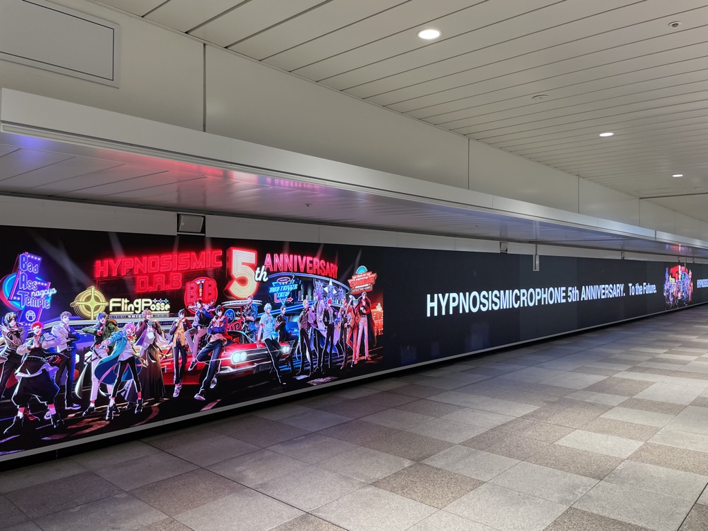「ヒプノシスマイク –Division Rap Battle-」が来月9月2日に5周年を迎えることを記念し、JR東日本 新宿駅東西自由通路『新宿ウォール456』で5周年記念映像が放映されている。