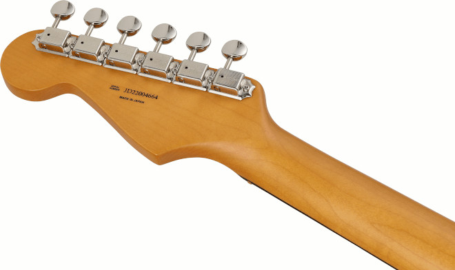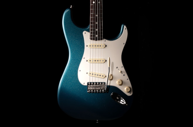 特徴であるオリジナルのボディカラー“Paradise Blue”は、自身のヴィンテージストラトキャスターの“Lake Placid Blue”が経年変化で深みを増した特有の色味を再現しながらメタリックを強めた本人こだわりのカラー。トップコートのニトロセルロースラッカーは最小限に抑えられ、ヴィンテージのような鳴りとルックスを楽しめる仕様となっている。本人実機からプロファイルされたネックは、ヴィンテージの握り心地を忠実に再現しつつナロートールフレットによりスムーズな演奏性を実現。本機のために開発された3基のCustom Wired Vintage Style Single Coilピックアップは、特殊なワイアリングによりマシンワウンドでありながらハンドワウンドのような豊かな倍音とエッジを生み出すことに成功している。