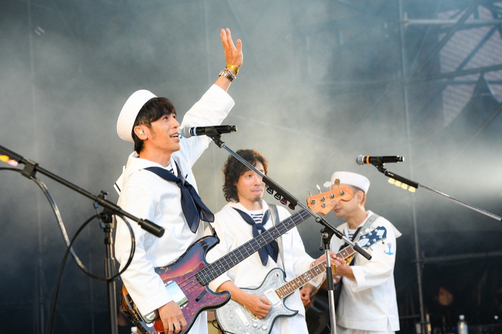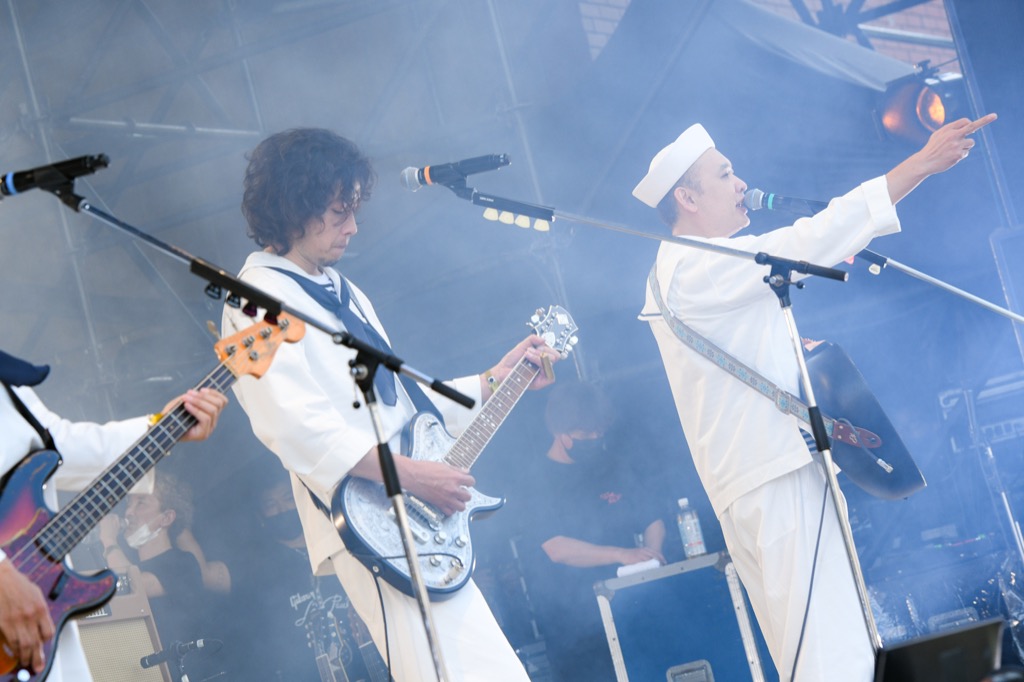 しかし曲が終わると、井戸端会議のようにトークが始まって、そして尽きない。先輩風を吹かせる奥田シトーンに、後輩づらの浜崎ストーン。「フェスってのは、とにかく時間がないから」と収めようとするのは斉藤シトーン。「時間がないときはスタッフが肩を叩きに来ることになってる」と、どこ吹く風のキングシトーン。