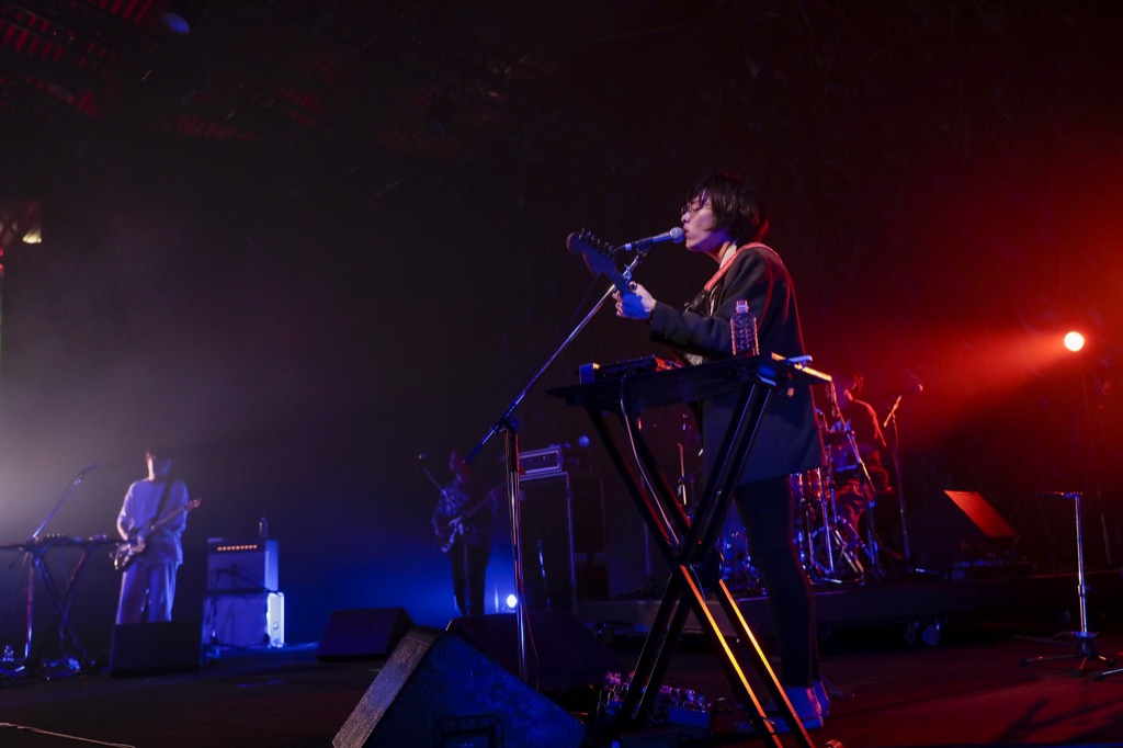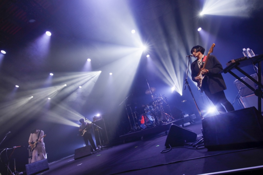 手練のアレンジで複雑な曲のようにも思えるが、シティポップにも通ずるようなフックを持ち、曲と風景がパッと重なる「散瞳」、クライマックスでは会場の照明以上の光が目に入ったように感じた「遠視のコントラルト」、躍動的なドラムロールから願うように歌を紡ぐ君島の姿も鮮やかだった「午後の反射光」という流れには本当に見惚れてしまったというしかない。実際、オーディエンスもとにかくステージ上の彼らに惹きつけられ、ずっと集中しているのだ。