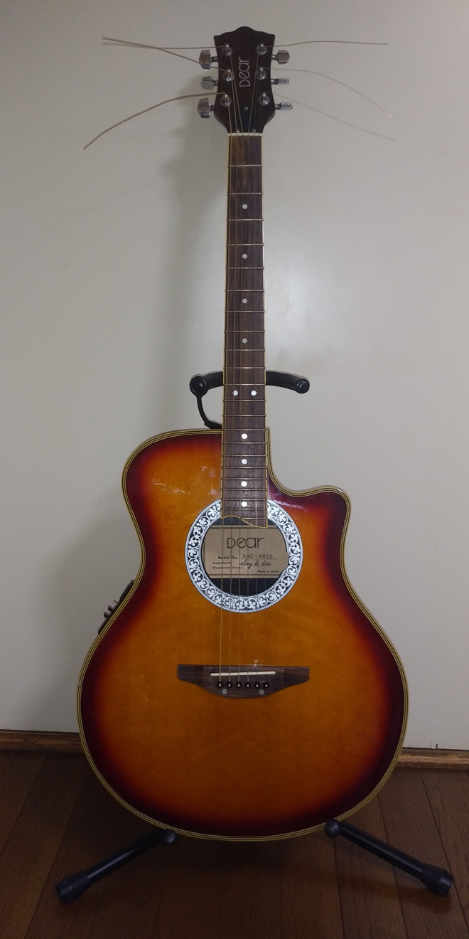 私は中学生の時に初めてギターを購入しましたが、コードも覚えられず断念し、その後も2本購入しては断念しては手放しを繰り返して来ました。でも弾き語りをする夢は覚める事なく、昨年1月にリサイクルショップでこのギターと出会いました。
