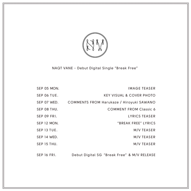NAQT VANEは9月1日0時にソーシャルメディアの公式アカウントを開設し、デビューシングルのリリースを発表。2日にはそのプロモーションカレンダーも公開された。プロフィールには“挑戦者に追い風を吹かせるチームプロジェクト”とのキャッチコピーと共に、トータルプロデューサーとして澤野弘之、ボーカリストとしてHarukaze、アートワーク担当としてClassic 6の名前が記されているが、現時点でプロジェクトの詳細は明かされていない。