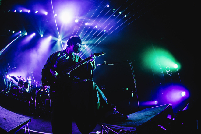 BGM代わりに流れるのが恒例となっているラジオ番組風音声『オールナイト転換』を楽しんでいる内に開演が迫ってきた。オメでたと同じくポニーキャニオン所属、メジャーデビューのタイミングがほぼ同じのOfficial髭男dism「Pretender」が『オールナイト転換』を締め括るのが最近のお約束なのだが……流れてきたのはフー・ファイターズの「The Pretender」。さりげないひとひねりを楽しんだ後、壮大なオーケストラアレンジが施された「ザ・レジスタンス」のインストゥルメンタルが鳴り響き、ステージに現れた赤飯(Vo)、ぽにきんぐだむ(Vo)、324(G)、mao(B)、ミト充(Dr)。ぽにきんぐだむの担当パートを見て、「あれ? ぽにきんぐだむはギターを弾くんじゃないの?」と気づいた人は鋭い。右手中指・薬指の骨折で全治2ヶ月と診断された彼は、今回のライブでボーカルに専念する旨が、実は数日前に発表されていたのだ。不測の事態をプラスに転換する意欲に溢れていたメンバーたちは、普段とは少し異なる編成で全力のパフォーマンスを届けてくれた。