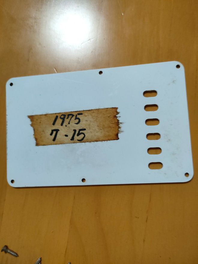 写真では細かな所までは確認はできませんが もしや・・・。これは現物も見ないといけないと販売店を調べたら隣の駅ではないですか。早々に出向いて対面するとまぎれもない手放したギターそのものでした。自ら交換したペグ・エスカッション、打傷、そして私が手書きした購入日。何と45年ぶり私の手元に戻って来たのです。もう奇跡の再会と言うしかないです。