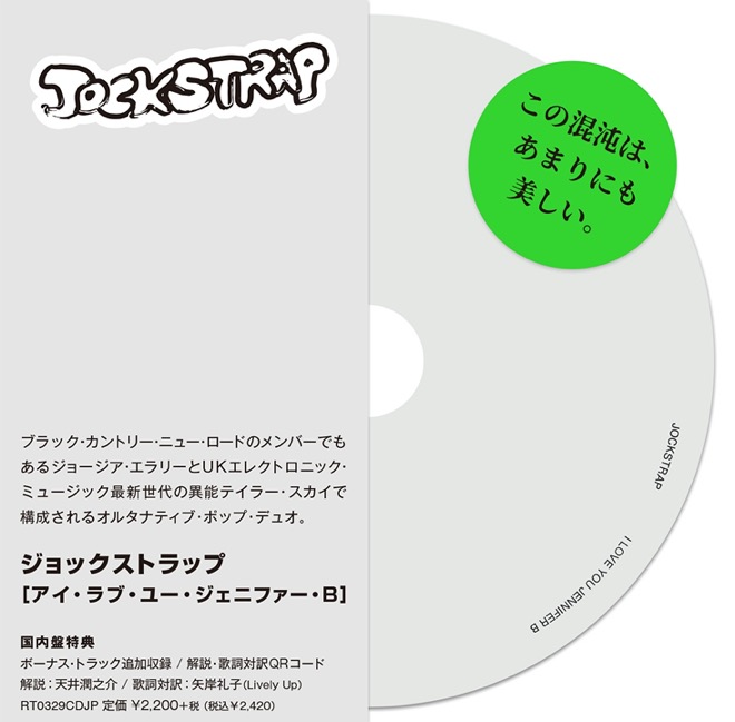 2022年のカオス、喜び、不確実性、陰謀、痛み、ロマンスを他にはない形で表現しているジョックストラップの待望のデビュー・アルバム『I Love You Jennifer B』は、9/9世界同時発売。本作の日本盤CDには解説および歌詞対訳のDLコードが封入され、ボーナス・トラックを追加収録する。輸入盤は通常LPに加え、数量限定グリーン・ヴァイナルが同時発売される。