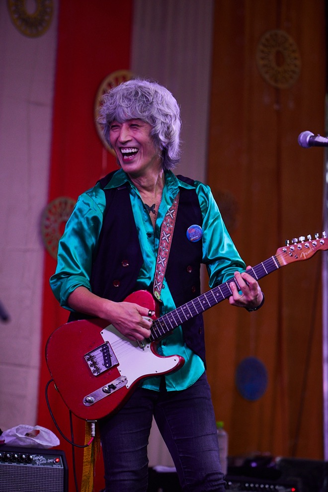 そんなみんなに向け、石田長生から譲り受けた1961年製フェンダー・エスクワイアを手にした三宅伸治(Vo, G)は、まずコードを一発ストローク。