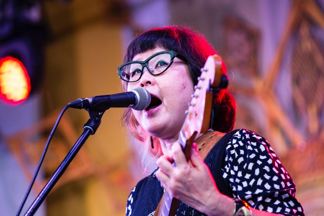だが、しゃべり始めると別の面をのぞかせる。佐藤タイジとうつみようこのMCのやり取りは、本人たちはまるで意識してないと思うが、ほぼ夫婦漫才のようなノリだ。“うつみ師匠”呼ばわりする佐藤タイジでもある。しかしメンバー間のコンビネーションの良さがあるから、ほぼインプロのギタープレイを佐藤タイジが弾きまくっても、キメのタイミングからエンディングまで見事な呼吸感が存在。もちろんバンド感だって高い。