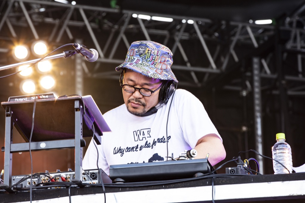 ダンス・ホールの始まりか。吉沢Dynamite.jp(DJ)が一人登場して、ターンテーブルとサンプラーでオーディエンスをうねらせていく。その音にメンバーも煽られるようにして登場した。そのメンバーとはもちろん佐藤タイジ(Vo,G)、中条卓(B)、Yasuhiro Yonishi(デッキ)、沼澤尚(Dr)。シアターブルックだ。