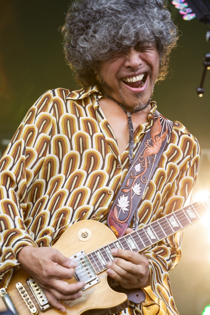 そして歌い始めた「Purple Rain」。青空のずっと先まで、中津川を囲む山並みの遠くまで響いていく。佐藤タイジの歌を心地よく聴きながら、腕を上げ揺れるオーディエンス。音楽と自然と人、全てが溶け合ったドラマティックな光景がここにある。佐藤タイジの弾くギター・ソロは、喜びの声となり、歓喜の大歓声となり、響き渡った。