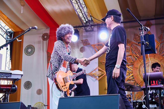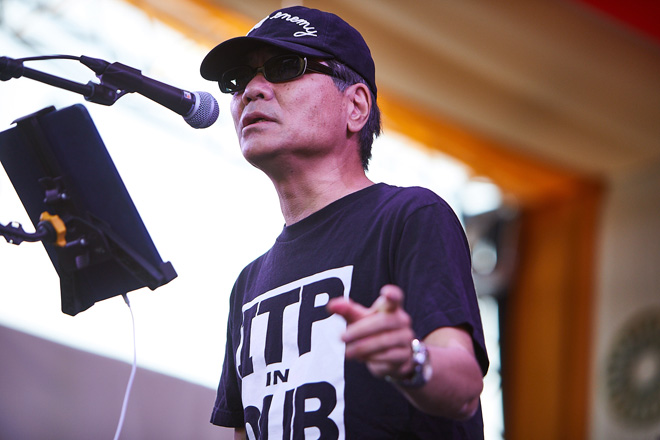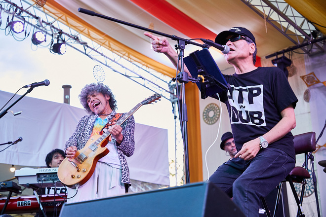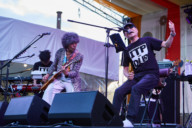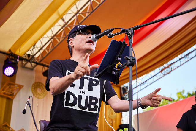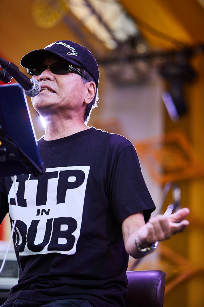 暑さも和らぎ、涼しさを感じさせる風も吹くRESPECT STAGEで鮮烈なメッセージと極上のダブサウンドを届けてくれたのがいとうせいこう is the poet。<中津川 THE SOLAR BUDOKAN>を主宰する佐藤タイジに「呼ぶ、呼ぶ」とずっと言われていたそうだが、念願叶っての出演となった。