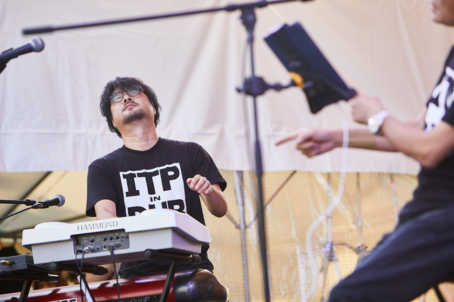 いとうの「ITP! ITP! ありがとう、<THE SOLAR BUDOKAN>。踊っていってください」との言葉で「Jazterpeace」からライブは始まったのだが、いやはや生で体験すると想像の何倍も食らう。吐き出される言葉は、ラップとはまた違い、定型化することなく、もっとフレキシブル。表現としての生々しさ、リアリティが凄まじい。