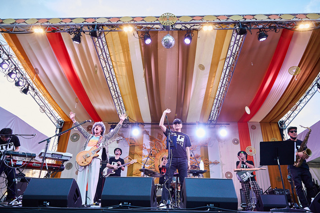 また、強烈だったのが先ほども少し触れた「平和を笑うな」だった。「NO BIG POWER」のアウトロからWatusiがフレーズを引っ張り、そこへメンバーが音を重ねていき始まったこの曲。シリアスなムードではあるが、誰かや社会を嘲笑するなと真っ当に歩む人の背中を押してくれる言葉が並び、本当に大切なことを改めて再確認、再認識でき、応援歌のようにも響く。サウンドとしての熱量も尋常ではなかった。