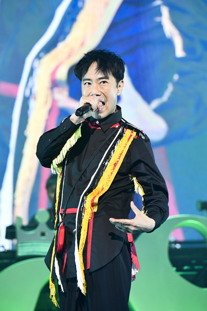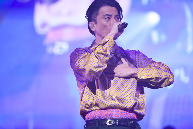 ステージのバトンを預けられた三浦大知は、ダンサー陣とともに「Blizzard」や「Touch Me」とめくるめく歌唱力とダンスの熱演を届ける。キレのある体捌きの中で歌声を乱すどころか、その全身芸術の精度をどんどん上げてゆくようだ。大人びた悩ましいマインドを表現する「About You」から「飛行船」へと至る頃には、汗で衣装がずぶ濡れ。KREVAからは「リハーサルのまま思い切りぶつけよう」と言葉をかけられていたものの、勢い余って「162%ぐらいの」力が出てしまったらしい。唱歌のように温かく懐かしい響きの最新シングル曲「燦々」の後には、KREVAの「イッサイガッサイ」をカバー。楽曲の後半でステージに飛び込んできたKREVAと再び共演した。