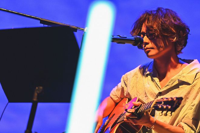 力強い手拍子の中、ラテンの香りのするギターリフが響き、どんどんBPMが早くなる。「Girl A」だ。「make some noise!!」と川上が叫ぶ。熱気ムンムンの中、川上がハイトーンボイスで歌いながら、オーディエンスに手拍子の強弱の指示をし、盛り上げていく。「まだまだいけますか?」と言うと、場内には手拍子だけが響く。その手拍子のビートに自らのギターのカッティングを乗せ、いたずらっ子っぽい笑顔を浮かべながら「表参道を六本木にしませんか?」と言い放ち、ドラマ『六本木クラス』の主題歌「Baby’s Alright」へ。片手を上げ、手拍子を静止させ、エモーショナルな歌とギターを鳴らしたかと思ったら、「手拍子カモン!」と煽る。巧みにオーディエンスを扇動し、一体感が増していく様が素晴らしかった。「気持ちいいね。最高です! アコギライブとは思えない程の熱気になったと思います」