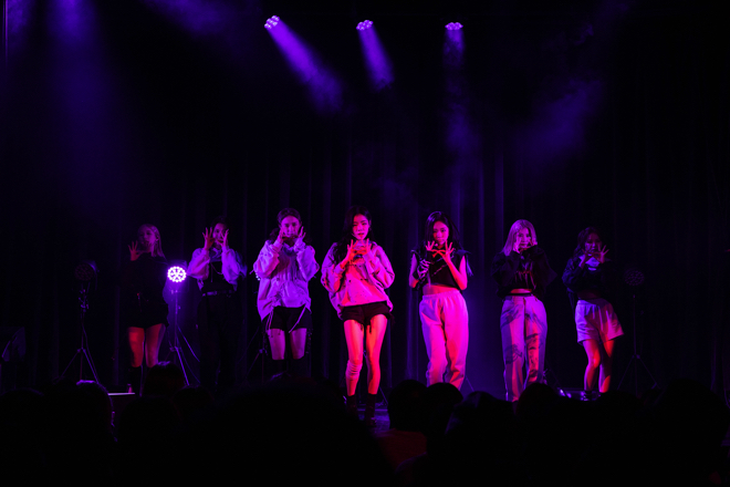 韓国の7人組ガールズグループPURPLE KISS(パープル・キス)が、初来日公演<PURPLE K!SS JAPAN PREMIUM SHOWCASE 2022 〜紫〜>を開催。9月23日の大阪BIGCAT、25日の渋谷WWW Xで、計4回の公演を行い、これまでの活動曲を中心とした11曲のパフォーマンスと、楽しいトークを披露した。