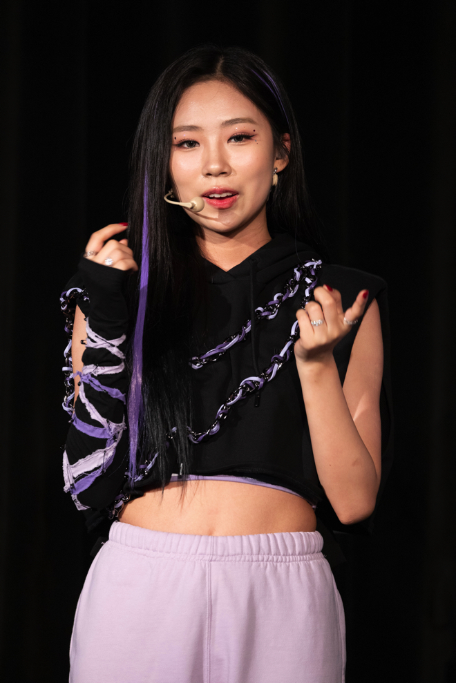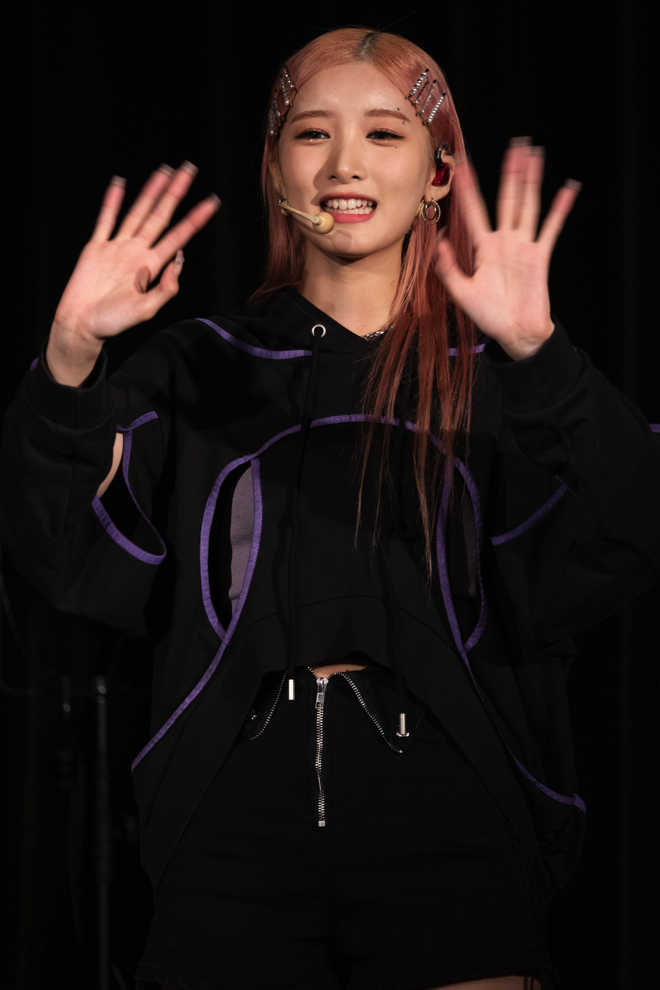 ショーケースということで、彼女たちのパーソナリティを知るためのトークパートも設けられた。グループのエネルギー担当だという元気なイレのストレス発散方法は、「メンバーとたくさん話す、寝る、日記を書く」ことだそう。韓国語でのラップメイキングもこなす日本人メンバーのユキは、「最初は韓国語もできないのに、ラップとラップメイキングをするのは負担でした。でも、練習することで上手くなっていきました」と激白し、特技だという「ドラえもんとジャイアン」のモノマネまで披露した。「ファンの皆さんがかわいくてたまらない!」というチェインは、客席のファンを先導してペンライトの光でウェーブを起こし、「多彩なカラーのあるグループ」とチームを評したゴウンは、「ユキちゃんのお母さんがドラえもんのパン(どら焼き)を差し入れてくれて、抹茶味を食べました」というTMI(小ネタ)を披露。ドシが「今、J-POPにハマっていて、King Gnuをよく聴いています」といえば、「目が悪いのでレーシック手術をしたい」というスアンに、イレとユキが「私もやりたい! 一緒に行こう」と賛同。そして最年長のジウンは、「今まで見せたことのない姿を見せたい!」と考えながらいつも練習していることを明かした。
