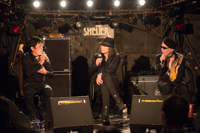 やれやれと笑い合いながら、実に41年前にもなる3人の下北沢での出会いの話から、ゆるりと80年代トークが始まる。当時のパンク、ノイズ、ニューウェーブシーンなどのアンダーグラウンド文化に触れつつ、ロックバーでのデカダンでデンジャラスなエピソードを次々と披露し、観客に笑いを誘った。そもそもGENETと渡邉貢がAUTO-MOD clas-sixを結成するきっかけが、カワカミノボル主催イベントでの「GENETと貢でなんかやってよ。」の一言からだったというから、シリーズ#0のゲストというのも頷ける。