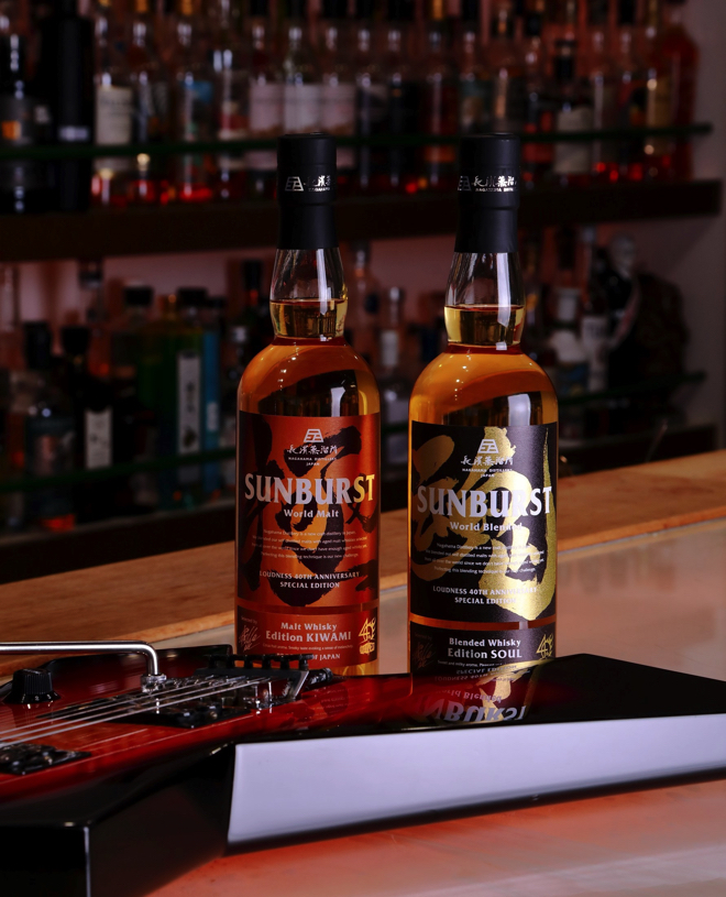 2021年に40周年を迎えたLOUDNESSは、同年末に節目を飾るダブルアルバム『SUNBURST~我武者羅』を発表した。アルバムと同じ名前が付けられた「SUNBURST」は、滋賀県の長濱蒸溜所とのタッグで、丹念なテイスティングとブレンディングを繰り返し樽の選定まで徹底的にこだわって造り上げられたというオリジナルウイスキー。モルトウイスキー「SUNBURST 極 〜KIWAMI〜」とブレンデッドウイスキー「SUNBURST 魂 〜SOUL〜」が、それぞれ5000本限定で11月4日に発売されることが決定している。