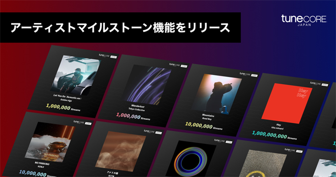 音楽デジタルディストリビューションサービスTuneCore Japanを運営するチューンコアジャパンが、「アーティストマイルストーン」のローンチを発表した。