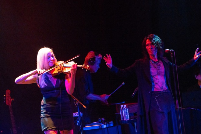 躍動する魂を表現したかのようなMORRIEの身振り手振りにも惹きつけられた「I’m In A Coma」、中盤に挿入された語りが深遠さを増し、時空を超えた物語として帰結した「Luna Madness」。MORRIEが亡き足立“YOU”祐二のソロライヴで共演したこともある「Heaven」では、岡野が『shambara』(1988年発表)のレコーディング時に使用したというスリットドラムを持ち込む場面も。アルバムと同じく客演したHeather Paauwe(Vn)のヴァイオリンの音色が歌と並立しながら融合する様にも魅了された。