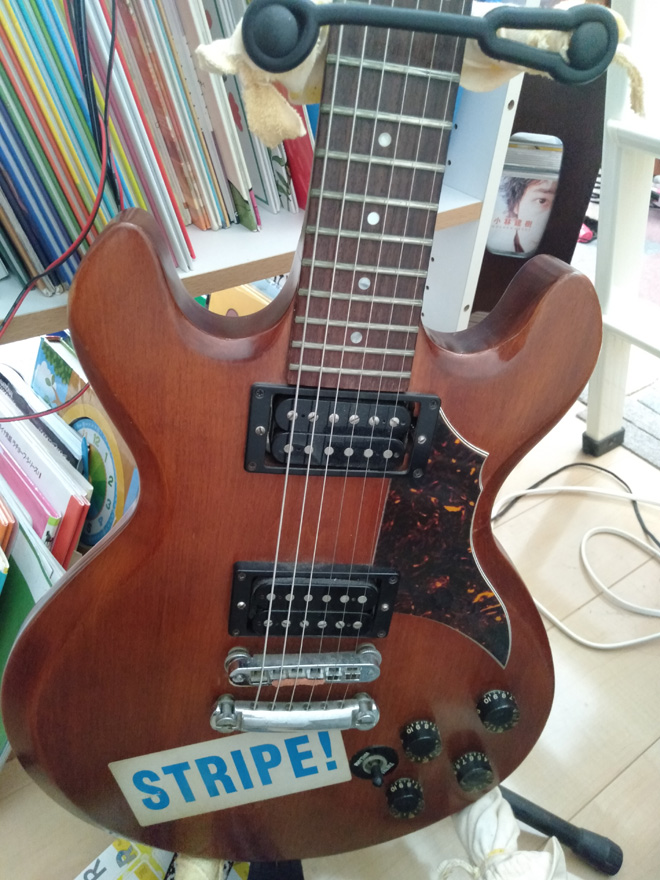 音楽はもともと好きでしたが、ギター自体に興味を持ったのは、高校のクラスメイトが学校に持ってきていたエピフォンのセミアコが原因でした(当時はオアシスが一大ブームでした)。セミアコの形に恋をした私は大学入学と同時に韓国製のシェラトンIIを手に入れ、ビックアップを交換したり一通り遊び倒したあたりで盗難の憂き目をみます。ずっと335が欲しかったのですが、名前だけ似てるこのギターを手に入れ、ムスタングに出会うまでメインギターでした。