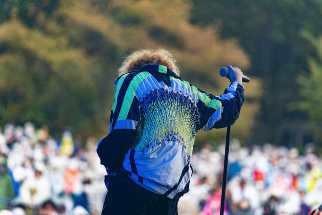 イベントは岸田繁(Vo,G)、佐藤征史(B,Vo)による恒例の開会宣言で幕開け。通算16回目にして久しぶりの現地開催に、佐藤が「音博が始まった年に生まれたお子さんも来てくれてるかもしれないよね」と感慨深げに会場を見渡し、岸田は「今年は梅小路に帰ってくることができました、ただいま!」と満場の観衆に感謝を告げる。