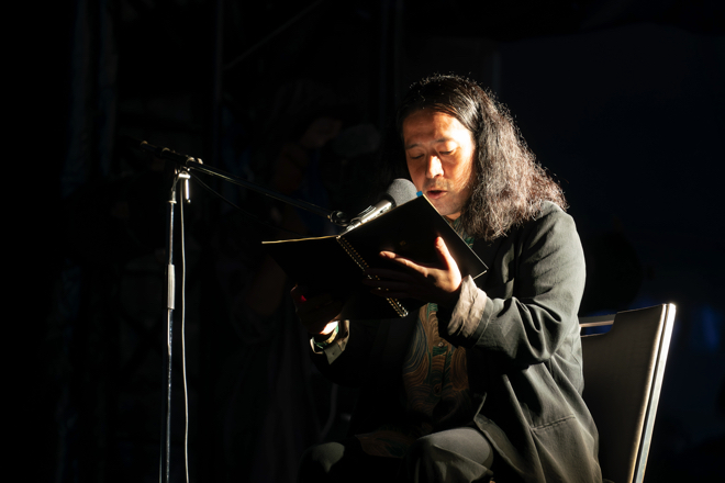 いよいよ<音博>もフィナーレへ。ここでピースの又吉直樹が登場し、「今日は皆さんと同じ一人のくるりファンが、どのようにくるりと関わってきたかを話します」と、椅子に腰掛け朗読を始める。18歳の頃、くるりの「東京」とラジオで出会い、上京した後も、お笑い芸人としての転機に、恋人とのささやかな日々に、何者でもなかった自分のそばに、常にくるりの音楽があった。ここにいる多くのファンと同じように。