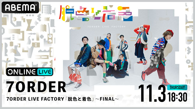 7ORDERの全国ツアー追加公演<7ORDER LIVE FACTORY 「脱色と着色」~FINAL~>の模様が、11月3日18時30分よりABEMA PPV ONLINE LIVEで独占生配信されることが決定した。