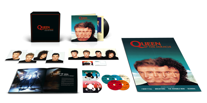 11月にリリースされる『ザ・ミラクル – コレクターズ・エディション』は、LPとCD5枚、DVD、Blu-ray Discで構成されたボックス・セットで、未発表曲6曲やスタジオ内でのメンバー同士のやりとりも聴ける『ザ・ミラクル・セッションズ』、当時発売を検討していたというコンピレーション作品を再現した『オルタナティヴ・ミラクル』、インストゥルメンタル音源やインタビュー、プロモーションビデオなどが収録されるそうだ。未公開写真やバンドからファンクラブ宛てに送られた手書きの手紙、当時のプレス評、ライナーノーツを掲載した76ページのハードカバーブックも付属する。