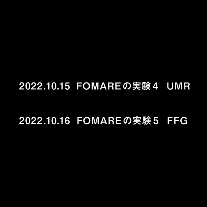 本日18時、FOMAREのオフィシャルSNSに急遽、【2022.10.15 FOMAREの実験4 UMR】【2022.10.16 FOMAREの実験5 FFG】という声明が投稿された。