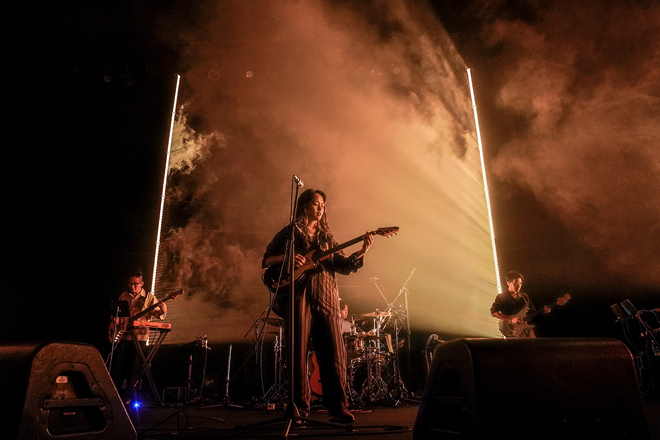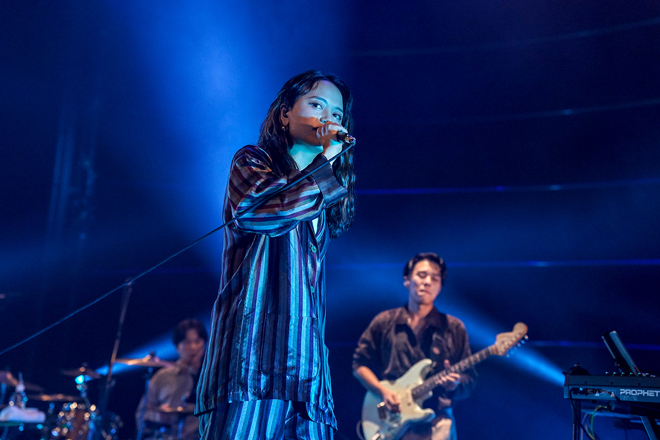 MCでは躍動感が際立つこの日のパフォーマンスについて、「前回のツアーは落ち着いた曲が多かったので、今回のライブは踊れるセットリストにしたかったんです」と語ると、後半は再びダンスナンバーが目白押し。バンドは小気味いいギターのカッティングとラップが絡み合う「半端じゃない」とシンセサイザーが瞬く「Clear color」を繋ぎ、都会的ダンストラックが疾走する「摩天楼」、そしてリズム隊のジャムから「Sparkle」のスリリングな楽曲世界へ。さらに客席のハンドクラップを呼び水に、ゴスペルの高揚感をたたえた「24-25」、6月に配信リリースされた新曲「STARLIGHT」を披露。新機軸となる80’sマナーの軽快なシンセポップサウンドと共にポジティブなメッセージを届けると、ヒップホップ・ヴァイブのもと、会場が一体となった代表曲「Wonderland」で本編を締めくくった。