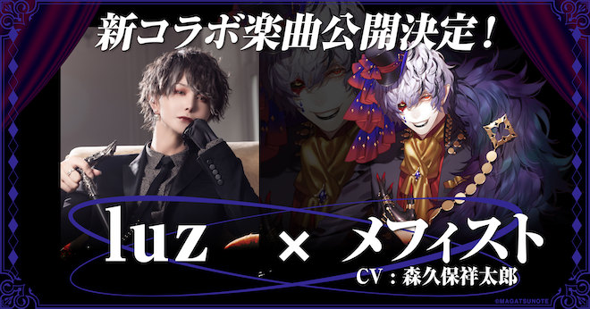また、悪魔との契約斡旋を行う企業「DD」の創始者にして総支配人である謎の男・メフィスト(CV:森久保祥太郎)のキャラクタービジュアルを初公開するとともに、コラボアーティストとしてluzの起用と、新コラボ楽曲「Doll in Doom」の制作も発表。「Doll in Doom」はluzがメフィストをイメージして書き下ろした新曲で、ミュージックビデオや楽曲の詳細は近日公開予定だ。