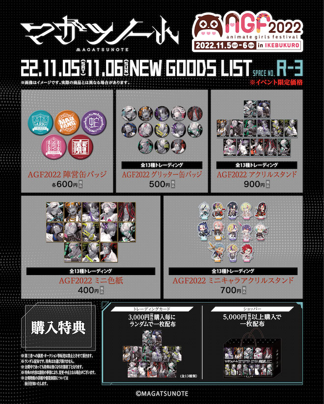 なお、『マガツノート』では11月5日、6日に池袋のサンシャインシティにて開催される<アニメイトガールズフェスティバル2022>にてスペシャルステージを開催する予定だ。本イベントで販売される新グッズの情報も公開されている。