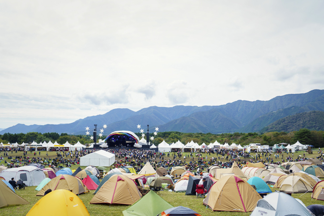 たとえばYogee New Wavesの演奏中のことだ。グッドフィーリングなパフォーマンスに体を揺らす観衆のすぐそばで、巨大なシャボン玉を飛ばすことに成功した母と子が全身で喜びを表していて、自ずと周囲の人々の顔もほころび幸せが伝染していた。そばには得意げにブカブカのサングラスをかけている子どもがいて、大人たちは久々の再会に盛り上がり、また、テントの主のように遠くからステージを眺めているおじいちゃんの姿も見える。愛犬とともに参加している人も多い。当たり前だと思っていたことが実はそうでないと痛感した今、そこには宝物のような光景が広がっていた。本稿ではそんな2日間のレポートを掲載する。