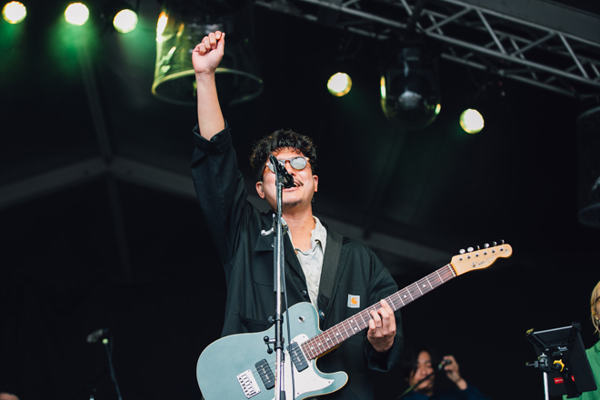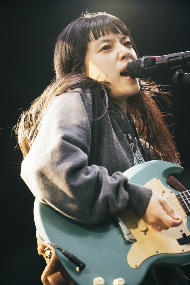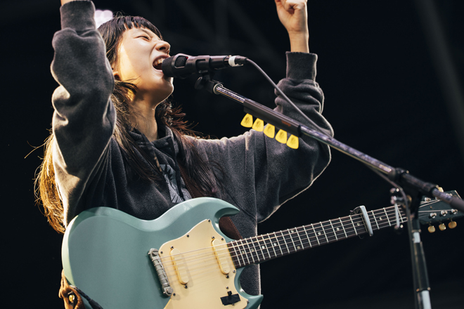 MOONSHINE STAGEに登場した君島大空が異彩を放った。それまで牧歌的な雰囲気に浸りながら幸福な風景を目にしていた最中、君島のステージには、リスナーひとりひとりの中にあるバグと交信してくれるような特別な包容力があった。人の美しさ、儚さ、危うさを時に微笑を浮かべながら秀逸なギターサウンドと共に正面切って表現する君島は、表現者としてとても素晴らしかった。