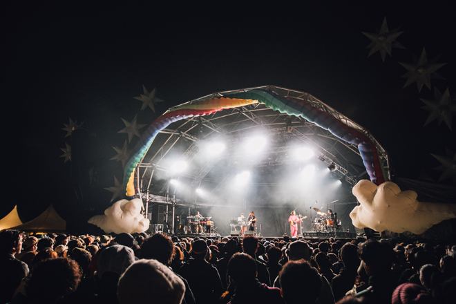 初日、RAINBOW STAGEのトリを飾ったのはTempalay。Spiritualizedのキャンセルによって予期せずしてトリをつとめることになったわけだが、フジロックを含めた大舞台で磨き上げてきたサイケデリックポップを壮大に鳴らし大役を務め上げた。MOONSHINE STAGEのトリはVegyn。4年ぶりに味わう野外レイブのような親密さと熱がとても嬉しかった。今年も、朝霧JAMならではのアクティビティである焚き火を他人同士で囲む贅沢なひとときを体験し、1日目は終了した。