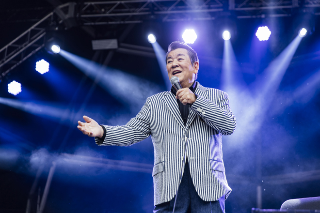 やはり、2022年の朝霧JAM最大のハイライトは加山雄三だろう。1曲目から「君といつまでも」というキラーチューン。優しく手を振りながらステージに姿を現した加山が伸びやかな歌声を放つと空気が一変して、誰もが彼の虜になった。すべてのスターがそうであるように、観衆ひとりひとりを包むその度量と繊細さに、すでに感動した。そしてMCでは、「幸せだなぁ」といった感謝の言葉ばかりを述べていく。「もう85歳だよ、ギネス記録級だよな(笑)」と本人は楽しそうに話したが、伸びやかで豊かな歌声からはとても信じられない。自身が憧れたエルビス・プレスリーの「Love Me Tender」、PUNPEEのラップを讃えてから曲紹介した「お嫁においで」、「14歳の時に作ったんだよ」というエピソードに若い観衆がまんまと驚愕した「夜空の星」。そしてラスト、名残惜しそうにしながらも、大好きな曲なんだと紹介して披露した「海 その愛」では、雨足まで強まるドラマを引き寄せながら、大きなロマンを乗せた歌が宇宙に響き渡った。彼のコンサート活動は12月の船上ライブを残すのみ。貴重な場に立ち会うことができて心から光栄だった。