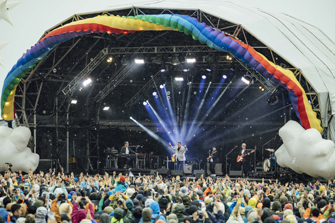 その一方で2日目は、羊文学やyonawaといった邦楽のオルタナティブなバンドや、STUTS、BIM&VaVa、Daichi Yamamotoなどジャパニーズ・ヒップホップシーンを担うアーティストも続々と登場した。特にバンドセットでパフォーマンスしたSTUTSは、才気ほとばしるセッションが素晴らしかった(このバンド編成で最新アルバムのリリースツアーも廻るということなので必見)。もちろん、BIMとDaichi Yamamotoを迎えた「大豆田とわ子と三人の元夫」主題歌「Presence」もセットリストに組み込まれ、冷たい雨が降りしきる会場を熱くした。