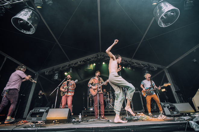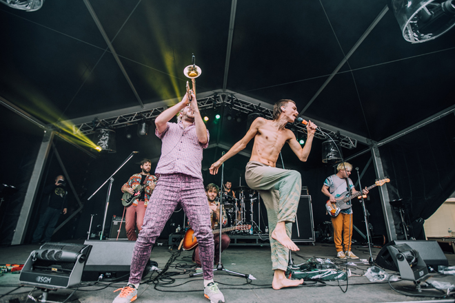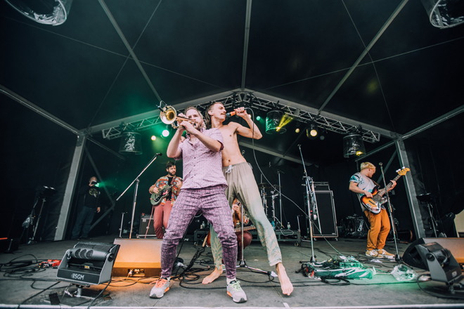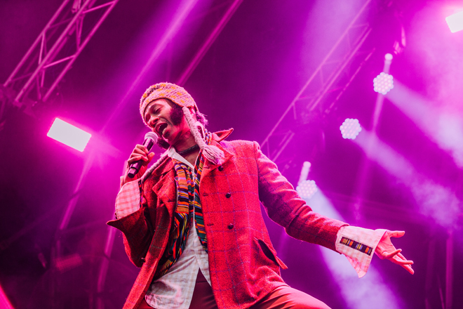 2日目のライブアクトでは、世界の音楽を味わった充実感がある。イギリスのAlfie Templemanは、19歳だがディスコビートやR&B〜ソウルのフィーリングをポップにまとめるセンスが抜群だった。ベッドルームミュージックとポップミュージックを兼ねた良質な音楽なので、チェックしてほしい。躍り狂った人も多かったのは、ハンガリーのBohemian Betyars。レベルミュージックかつダンスミュージックとして次々と繰り出されたスカパンクは、瞬間的にオーディエンスの心を掴んだ。そして、Fantastic Negrito。2日目の午後から雨が降り始め、夕方になると大雨に見舞われたが、エレピの音色がひときわ瀟洒なファンキーかつブルージーなバンドサウンドに吸い寄せられるように人がまた集まりだした光景は朝霧JAMらしかった。ジョークも交えながらエンターテナーとしてステージを盛り上げる姿は、さすがブラックミュージックの伝道師。また、初日に出演したフランスのThe Inspector Cluzoも強烈だった。農家とロックデュオの兼業という肩書きもインパクトがあるが、容赦ない気迫のロックで圧倒し続けた。SpiritualizedとKamaal Williamsのキャンセルは残念だったが、朝霧JAMは今回も世界の広さ、面白さをダイレクトに伝えるように多様な音楽を紹介した。