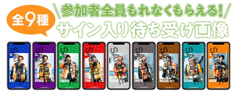 さらに!参加者全員にもれなくサインデータ入りオリジナル待ち受け画像9種をランダムでプレゼント