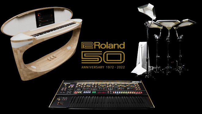 ローランドが、自社の電子ドラム、電子ピアノ、シンセサイザーの歴史とともに、創業50年を記念して製作したコンセプト・モデルを紹介する特設ウェブページを公開した。