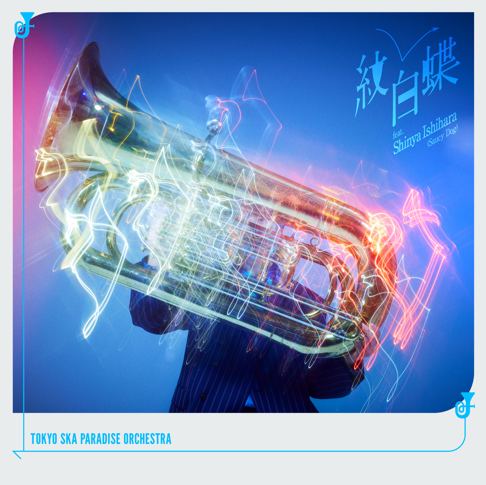 「紋白蝶 feat.石原慎也 (Saucy Dog)」の作曲は沖祐市(Keyboards)と石原慎也、作詞は谷中が担当。スカパラと石原慎也、合計10人の男たちがブルーのストライプ地の揃いのスーツを纏った最新ビジュアルとともに、まるで音符のように降り注ぐ光の中、今作の見所・聴き所でもあるチューバを力強く掲げた石原慎也が印象的なジャケット写真も公開されている。