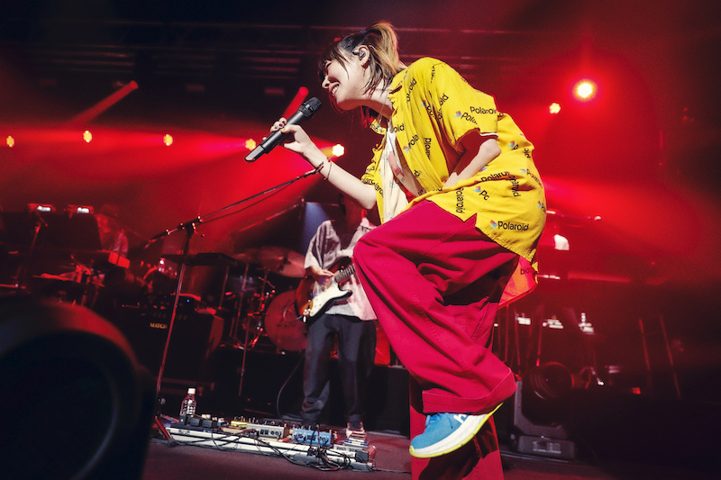 続けて披露された「帽子と水着と水平線」では、途中で曲が止まるとドラムの神⾕洵平が持ってきた「じゃがいも」を振り回して会場を沸かせる一面も。その後即興でラテンアレンジされた「帽子と水着と水平線」が披露され、元のアレンジに戻ると、颯爽と流れるビートに合わせて観客も飛び跳ねて楽しんだ。最後に「ストロー」を歌って終演かと思いきや、ライブはダブルアンコールに突入。バンドメンバーと息の合ったアレンジソングを披露し、まだまだ会場全体でライブを楽しみたい気持ちを歌に乗せた後、「ドライブモード」「未来を拾いに」「ボーイフレンド」「be master of life」を立て続けに歌唱し会場のボルテージは最高潮に達した。