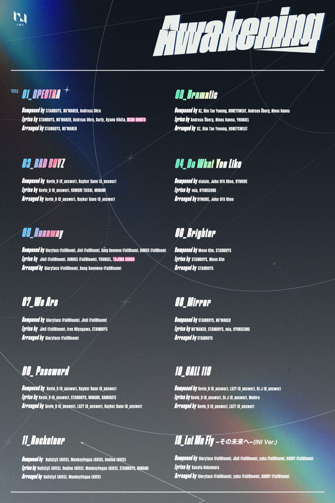 INIが12月14日にリリースする1stアルバム『Awakening』のトラックリストが公開された。